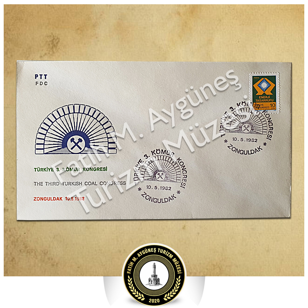 10 Mayıs 1982 Tarihli Türkiye 3. Kömür Kongresi özel temalı ilk gün (FDC) zarfı.